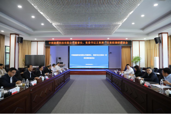 10月13日,中核能源科技有限公司董事长、党委书记王秋林一行来我校访问交流。PA视讯集团官网党委书记高山主持召开座谈会。中核能源科技有限公司党委委员、工程化研究中心主任陈景,校党委委员、副校长陈国民、于涛参加座谈会。