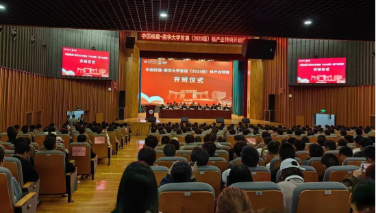 当天晚上,首届核产业特岗班开班仪式在PA视讯集团官网红湘校区南华礼堂举行,党委委员、副校长姜志胜主持。张卫兵为核产业特岗班授旗,并以《以梦为马不负韶华 中国核建的历史使命与时代责任》为题,为480名核产业特岗生讲授开班第一课。