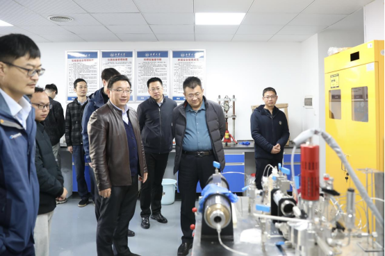 会前,阳奕汉一行在红湘校区先后考察了科创楼、核学楼、军工楼、激光实验室等地。当天下午,阳奕汉一行还前往资源环境与安全工程学院,与丁德馨教授团队进行了交流。