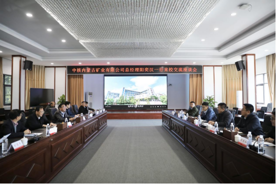 中核内蒙古矿业有限公司科研开发与信息化处及有关下属分公司负责人,学校科研部、招生处、机械工程学院、资源环境与安全工程学院、计算机学院、经济管理与法学学院、核科学技术学院、电气工程学院等单位、学院负责人参加座谈交流。