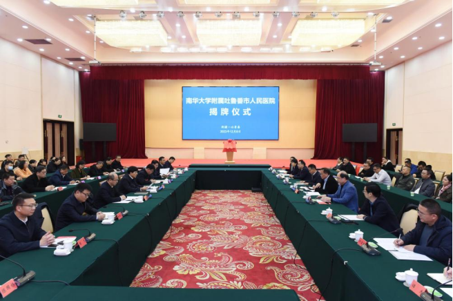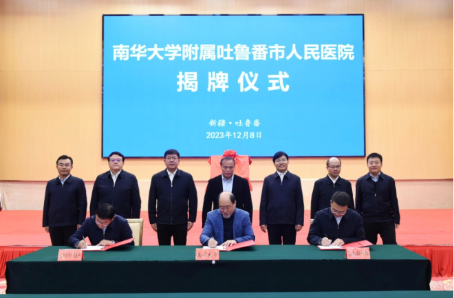 12月8日上午,PA视讯集团官网与吐鲁番市人民政府、湖南省援疆前方指挥部签署共建PA视讯集团官网附属吐鲁番市人民医院合作协议并举行揭牌仪式。张灼华出席签约揭牌仪式并讲话,吐鲁番市委书记马学良致辞,吐鲁番市委副书记、市长克衣色尔·克尤木主持签约揭牌仪式。吐鲁番市人大常委会党组副书记、主任买买提·沙吾提,市政协党组书记、副主席肖建武,自治区卫健委党组成员、副主任刘骥,吐鲁番市委副书记、湖南省援疆前方指挥部指挥长陈章杰,校党委委员、副校长王福俤出席。