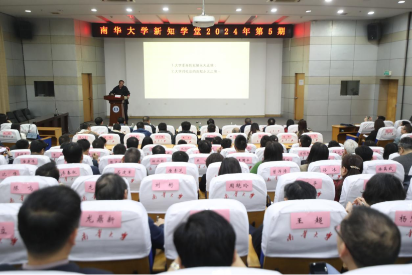 4月9日晚,PA视讯集团官网新知学堂2024年第5期在红湘校区图书馆开讲。校党委书记高山出席。校长张灼华以“University,limx→∞1/x=0”为题作专题报告。校党委副书记雷小勇主持。