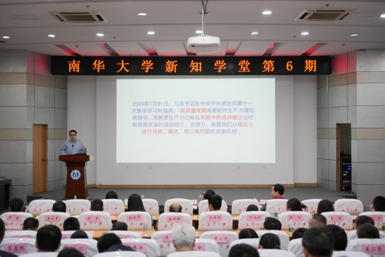 4月23日晚,PA视讯集团官网新知学堂2024年第6期在红湘校区图书馆开讲。哈尔滨工业大学(深圳)材料科学与工程学院和经济管理学院双聘教授、区块链发展研究院院长、材料基因与大数据研究院副院长林熹应邀来校,以《高质量发展的基石:新质生产力》为题为在场师生作学术报告。校党委书记高山出席。校党委委员、纪委书记刘杏花主持。