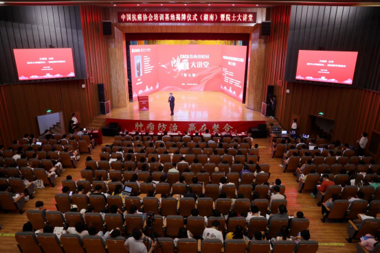 揭牌仪式暨院士大讲堂采用线上线下相结合的方式进行。衡阳医学院党委书记曾国主持仪式。衡阳医学院及附属医院有关负责人,师生代表700余人现场参加。近140万人通过医师报直播中心·医TV、师报视频号矩阵、新浪新闻客户端、抗癌协会视频号等平台同步观看直播。