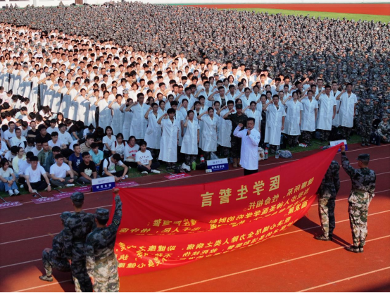 12202名新生齐聚北田径场,满怀憧憬与希望开启大学阶段新篇章。中国科学院院士饶子和出席开学典礼并致辞。全体校领导,学校国家级人才代表,各学院党政主要负责人,临床医学院院长在主席台就座。校党委书记高山主持开学典礼。