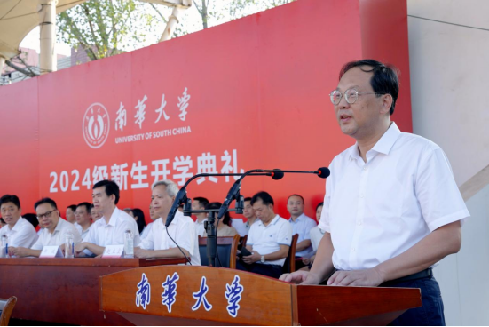 张灼华寄语全体新生,开学典礼是你们全新旅程的起点,未来的南华,将因你们的智慧、努力与奉献而更加辉煌,无论是学习、科研,还是生活中的每一个选择,都将成为你们人生中的宝贵财富,愿你们在南华的每一天都充实而愉快,在追求卓越的过程中,收获成长与幸福。