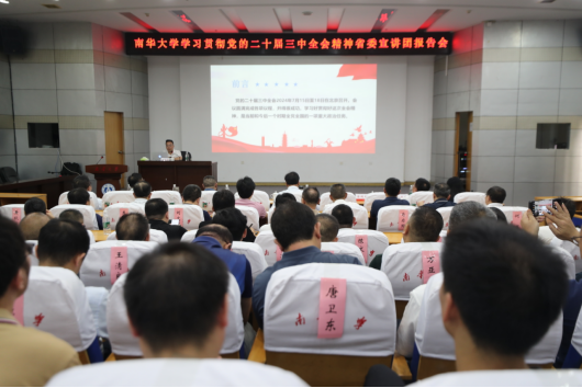 报告会上,唐超雄从“十次三中全会看定力”“十个数字密码把要义”“十项重要论述悟方法”“十余改革下好先手棋”等四个方面对全会精神进行了系统宣讲和深入阐释,并聚焦省委改革重点以及持续深化教育综合改革,就如何落实好全会精神提出了意见和建议。他强调,习近平总书记关于全面深化改革的一系列新思想、新观点、新论断,凝结着对改革开放以来特别是新时代全面深化改革宝贵经验的科学总结,是新时代全面深化改革理论创新、实践创新的最新成果。要深入学习贯彻习近平总书记关于全面深化改革的重要论述,坚持好、运用好贯穿其中的立场观点方法,全力以赴抓好全会精神贯彻落实,把党中央关于进一步全面深化改革的战略部署转化为推进中国式现代化的强大动力。