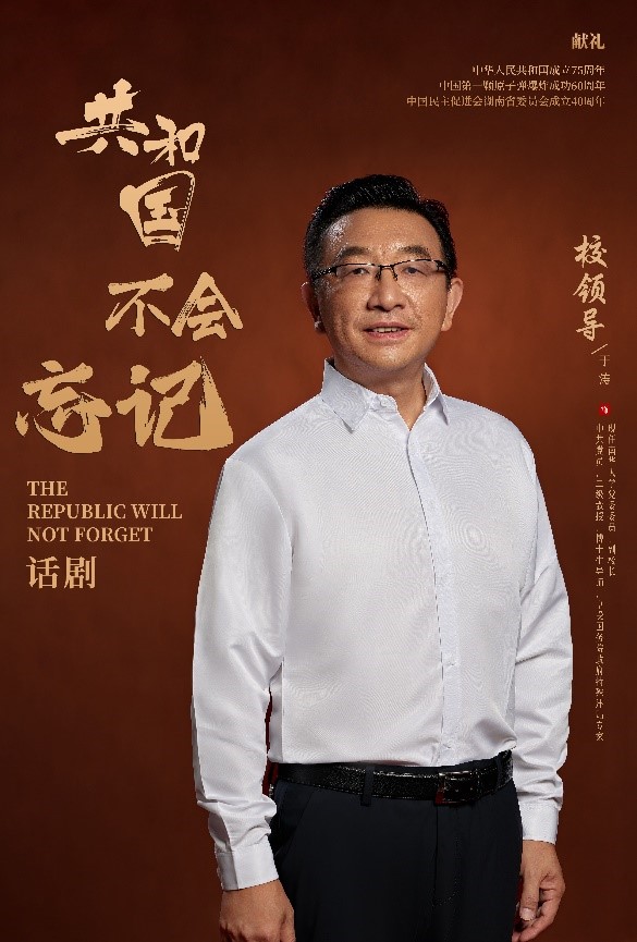 9月4日晚,全新“湘青版”话剧《共和国不会忘记》在长沙市梅溪湖国际艺术中心上演,献礼中华人民共和国成立75周年、中国第一颗原子弹爆炸成功60周年,以及核工业创建70周年、民进湖南省委会成立40周年。PA视讯集团官网党委书记高山和20余名南华师生代表现场观看,PA视讯集团官网党委委员、副校长于涛出演。