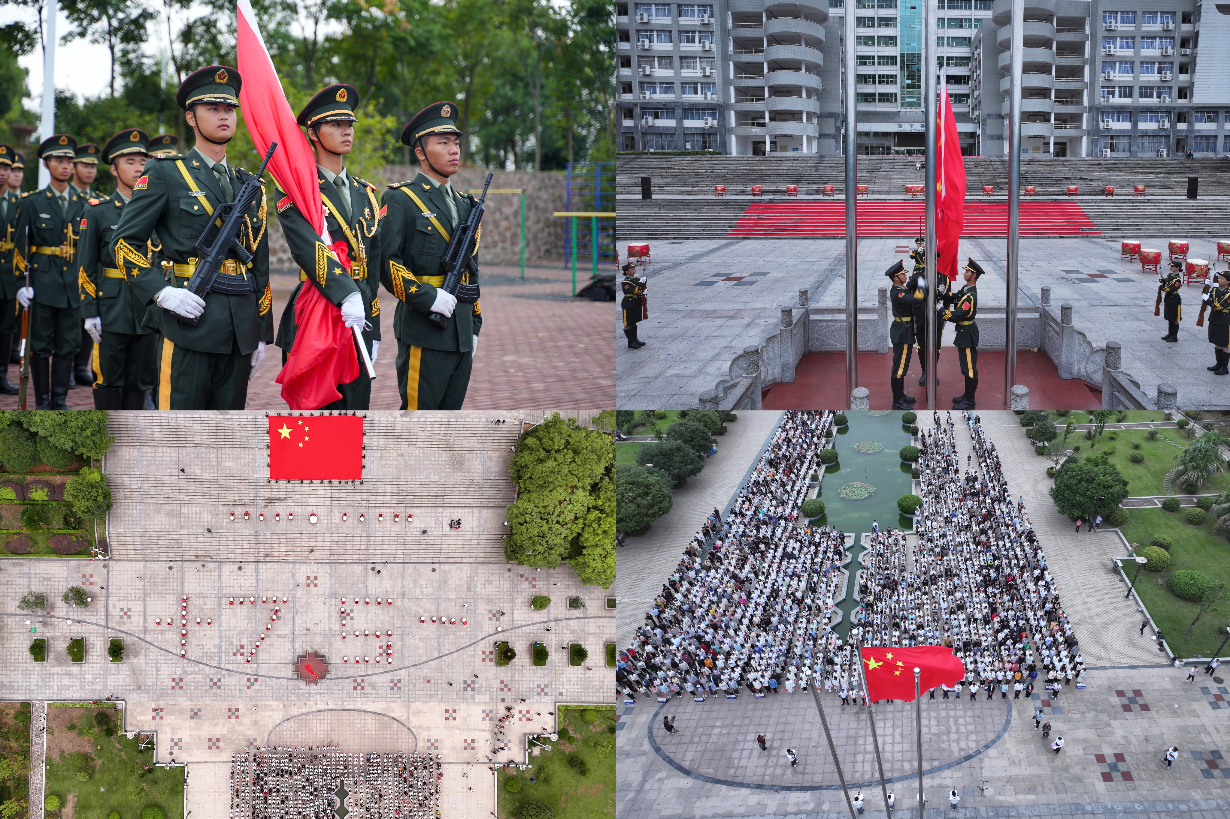 山河披锦绣,盛世写华章。10月1日清晨,为庆祝新中国成立75周年,加强爱国主义教育,弘扬爱国主义精神,PA视讯集团官网在红湘校区南华广场和雨母校区田径场同时举行庆祝中华人民共和国成立75周年升国旗仪式。校党委书记高山及全体在校校领导出席升旗仪式。