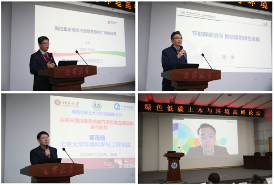 在随后进行的论坛主旨报告环节,聂建国院士、南京理工大学副校长何勇教授分别以“科技创新成就绿色低碳土木工程”“城市关键基础设施抗暴韧性数智评估进展与思考”为题作主题报告。聂建国院士用丰富的工程现场案例及数据,全面展示科技创新赋能绿色建筑结构的重要性,并强调只有坚持不唯书、不唯上、不唯洋、不唯他、只唯实,才能用科技创新成就绿色低碳土木工程。何勇教授从研究背景与意义、数物驱动智能计算方法、单体设施爆炸毁伤数智评估、设施体系抗暴韧性数智评估等方面全面介绍了城市关键基础设施抗暴韧性数智评估的研究进展。海军研究院海防工程设计研究所研究员、全国勘察设计大师王建平主持主旨报告会。