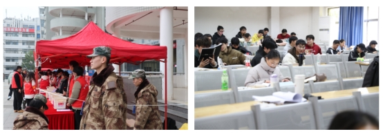 考试期间,学校安排了专门车辆前往雨母校区,接雨母校区考生来红湘校区参考,并在考区外设置了手机及个人物品存储区,方便考生存储手机及其他不能带入考场的个人物品。与此同时,学校开放了化工楼公共教室,提供空调、热水等服务,为跨校区参考考生休息备考提供便利。在考场外的医疗服务点,附属第一医院和校医院工作人员提供全程医疗保障,为考生健康保驾护航。针对个别行动不便的考生,学校提供专门安检通道,让考生能安心参考。高山、张灼华带队深入考区现场检查组考工作,向寒风中坚守岗位为考生提供服务的志愿者和工作人员表示感谢,并叮嘱有关部门负责人及各岗位工作人员严格遵循组考实施方案要求,全力实现平安研考的总目标。