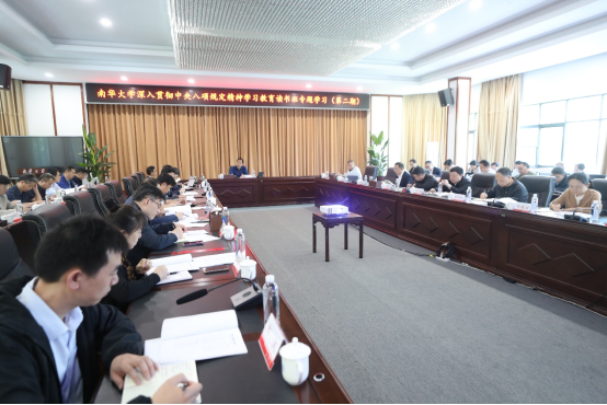 会上,高山领学了《中国共产党廉洁自律准则》《关于防治“指尖上的形式主义”的若干意见》,传达了近期省委深入贯彻中央八项规定精神学习教育有关会议精神,并结合中央纪委国家监委公开通报的十起违反中央八项规定精神典型问题、湖南省纪委监委通报的7起违反中央八项规定精神典型问题开展了警示教育。党委教师工作部部长郑波、党委宣传部常务副部长代艳丽、资源环境与安全工程学院党委书记张志军、附属南华医院党委书记周玉生结合各自的思想实际与工作职责作交流发言。