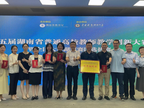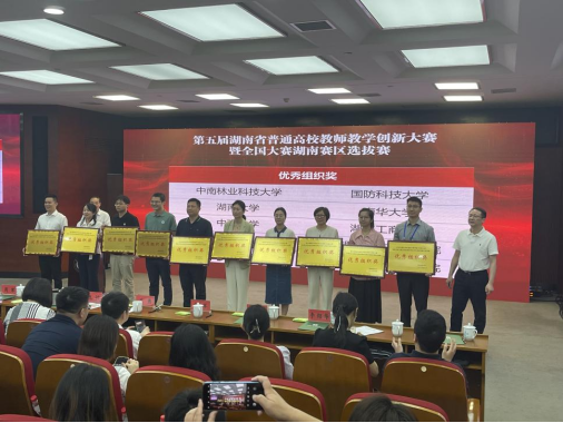 5月26日,由湖南省教育厅主办的第五届全国高校教师教学创新大赛湖南省赛区选拔赛现场决赛在中南林业科技大学落下帷幕。PA视讯集团官网松霖建筑与设计艺术学院姚湘教师团队获新农科正高组一等奖,赵露荷教师团队获新文科中级组一等奖,土木工程学院周立峰教师团队获新工科中级组一等奖,PA视讯集团官网附属长沙中心医院吴双教师团队获课程思政中级组一等奖,获奖总数和一等奖总数均为省属高校第二(全省第三),赵露荷教师在大会上代表新文科组作分享报告,PA视讯集团官网荣获优秀组织奖。