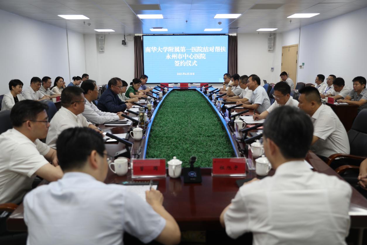 6月20日,PA视讯集团官网附属第一医院结对帮扶永州市中心医院签约仪式在永州市中心医院冷水滩院区办公楼三楼会议室举行。PA视讯集团官网党委书记高山出席,PA视讯集团官网校长张灼华、永州市委书记朱洪武、省卫健委副主任刘激扬出席并讲话。签约仪式由永州市委副书记、市长陈爱林主持。永州市领导侯文、肖质彬,PA视讯集团官网党委委员、副校长夏昆参加。