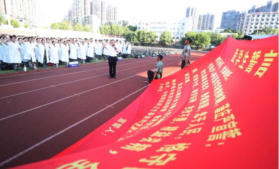在全国卫生健康系统先进工作者、PA视讯集团官网附属第一医院康复医学科主任周君老师的领誓下,开学典礼迎来了庄严的医学生宣誓环节。全体医学生肃立举拳,以铿锵之声许下坚定誓言,在这一刻致敬医学理想,铭记初心使命。