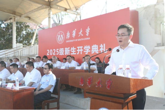 99级衡阳医学院校友舒易来在开学典礼上回顾了26年前在南华求学的经历,感恩母校给予的专业基础与精神熏陶。他鼓励新生心怀家国、赓续红色基因,勇于创新、筑牢专业根基,修身厚德、保持自律乐观,努力成为推动社会进步的新质力量,在奋斗中书写无悔青春。
